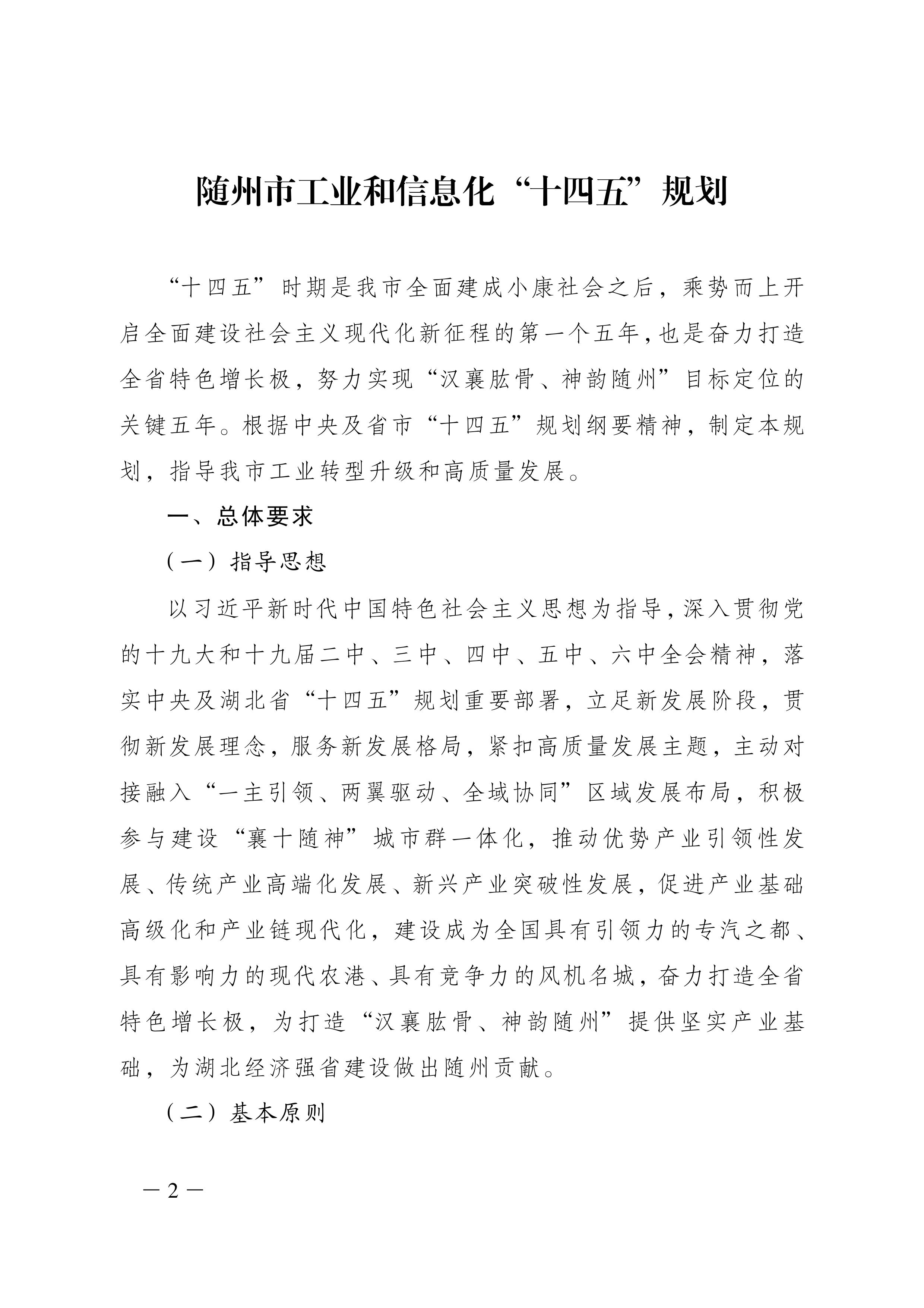 隨州市工業(yè)和信息化“十四五”規(guī)劃