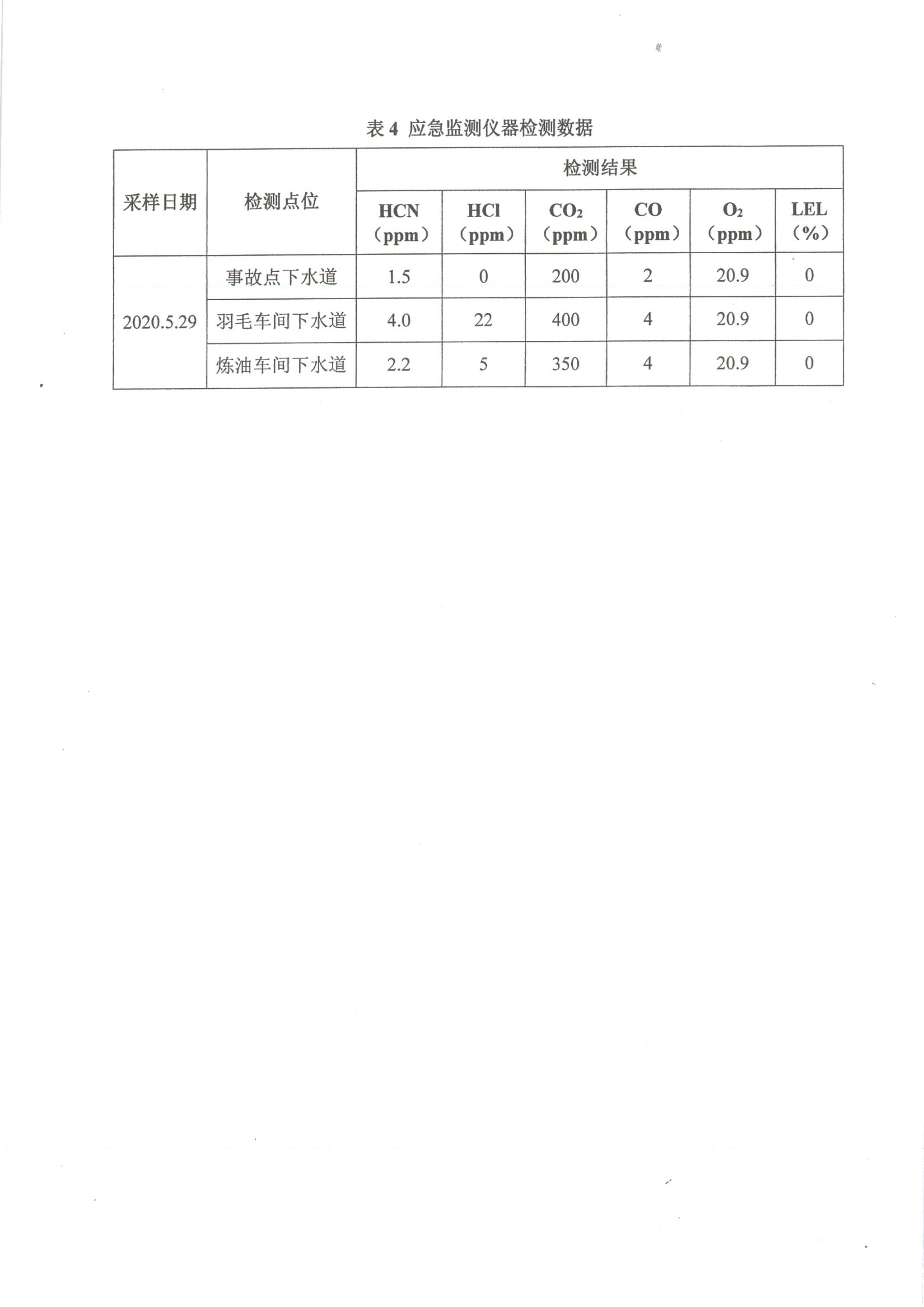 事故調查組委托了湖北紀安安全技術有限公司和湖北華信中正檢測技術有限公司兩家檢測機構對事發點的污水和氣體進行了取樣檢測,檢測發現事發污水溝內含有多種有毒有害氣體,具體數值見附件1、附件2、附件3。