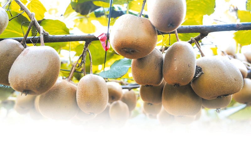翠樹千行,鋪就一片綠海;金果萬(wàn)顆,點(diǎn)綴滿樹枝頭。隨縣桐柏山太白頂景區(qū)宗灣村近四十畝獼猴桃基地正值豐收時(shí)節(jié),翠綠的藤蔓順著山勢(shì)蔓延,織就一張巨大的“綠毯”,果香隨著山風(fēng)四處漫溢。枝間飽滿的獼猴桃宛如“金燈籠”掛滿枝頭,沉甸甸的果實(shí)讓人真切地感受到豐收的喜悅。