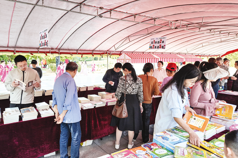4月20日,在世界讀書日即將到來之際,“培育讀書風尚 建設文化曾都”——“閱曾都 越美好”全民閱讀活動在隨城神農公園舉行,旨在推廣全民閱讀,共享書香文化。圖為讀者在市新華書店、曾都郵政分公司設立的書香文化集市上選購書籍。