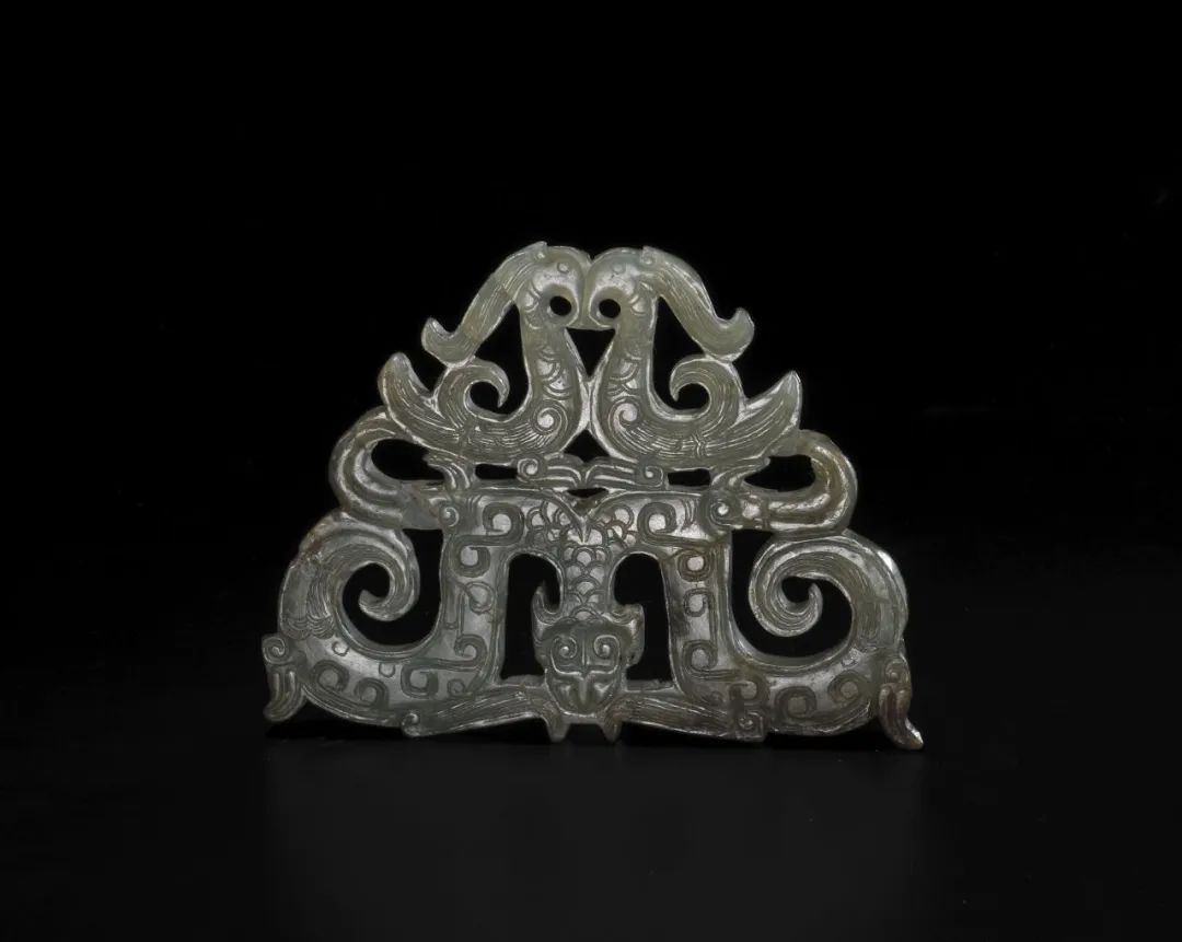 雙鳳連雙龍紋玉佩,約300 BCE,戰國中晚期,2002年棗陽九連墩1號楚墓出土,現藏于湖北省博物館