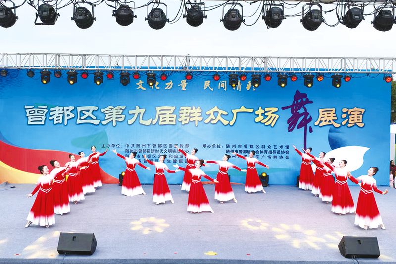 10月5日,“文化力量·民間精彩”曾都區第九屆群眾廣場舞展演在隨州博物館文化廣場成功舉辦,來自該區31支廣場舞團隊的500多名廣場舞愛好者踏著音樂節拍,舞出對祖國的深深祝福。