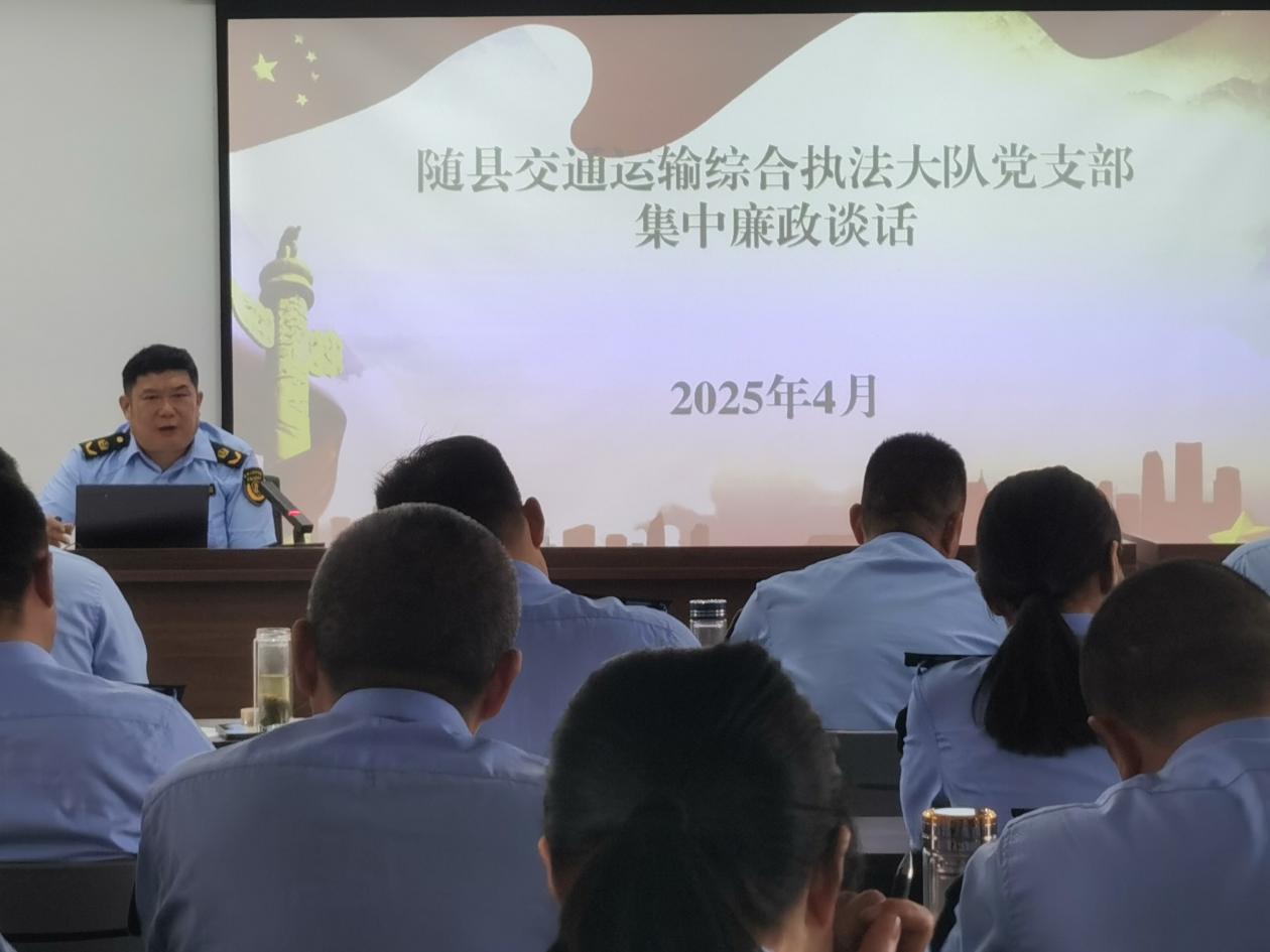 為深入貫徹落實中央八項規定精神,持續深化黨風廉政建設,4月11日上午,隨縣交通運輸執法大隊組織執法人員開展集中廉政談話。