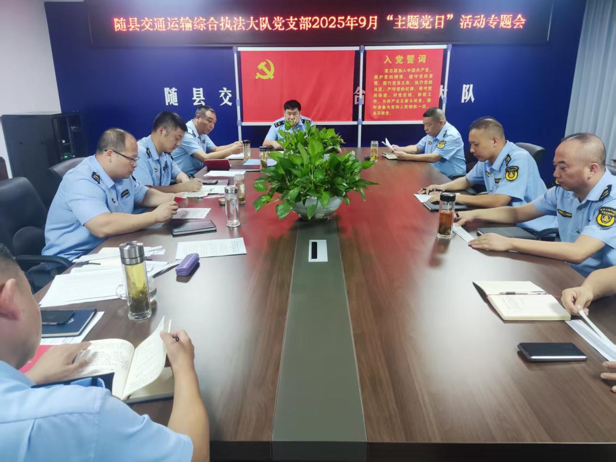 9月3日,隨縣交通運輸執法大隊把愛國主義教育與黨性錘煉緊密結合,組織全體干部職工集中收看紀念中國人民抗日戰爭暨世界反法西斯戰爭勝利80周年大會直播,隨后召開9月“主題黨日”活動,旨在強化隊伍思想政治建設,凝聚奮斗力量。
