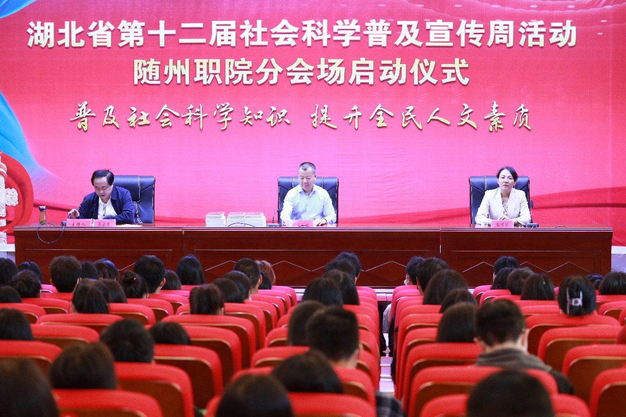 5月24日上午9點,湖北省第十二屆社會科學普及宣傳周隨州分會場活動啟動式在隨州職業技術學院舉行。隨州市委宣傳部副部長、市社科聯主席李可琴,學校黨委書記馬大奎出席,黨委委員、副校長梁學軍主持啟動儀式。
