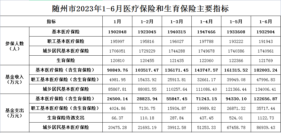 隨州市2023年1-6月醫療保險和生育保險主要指標