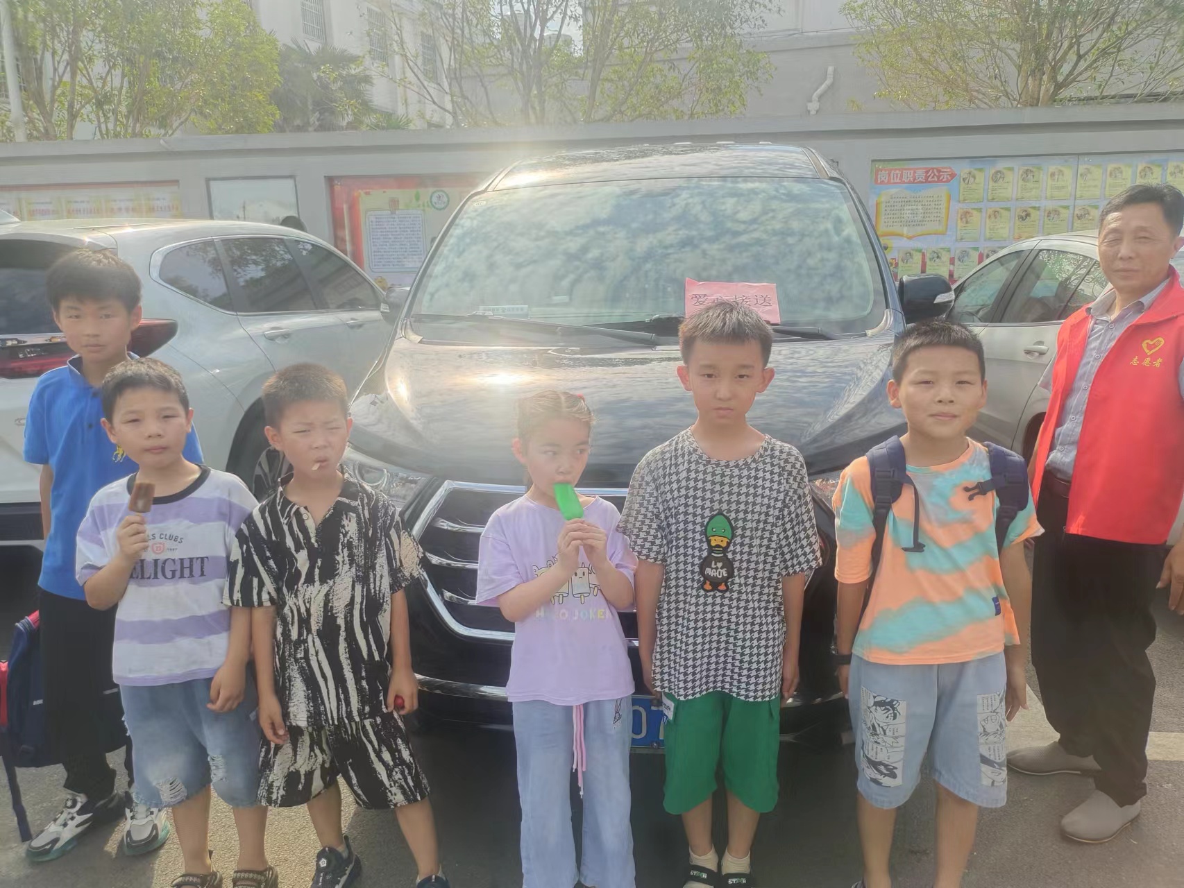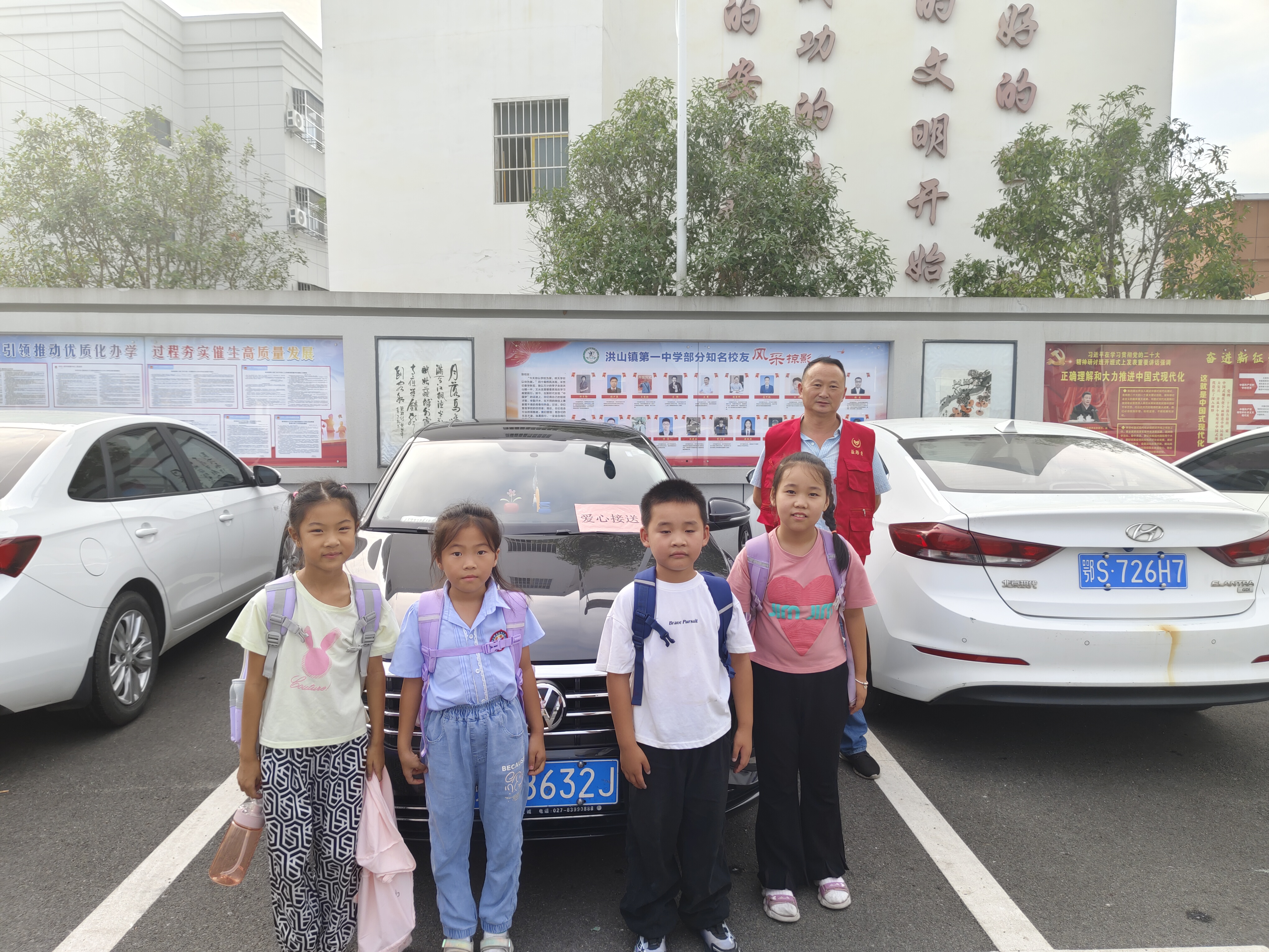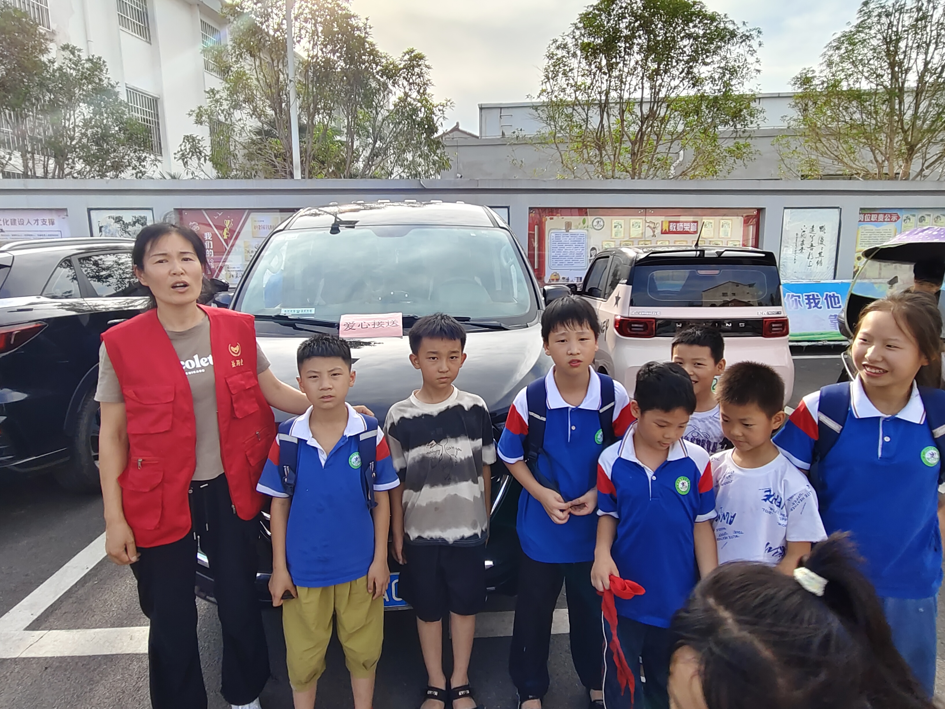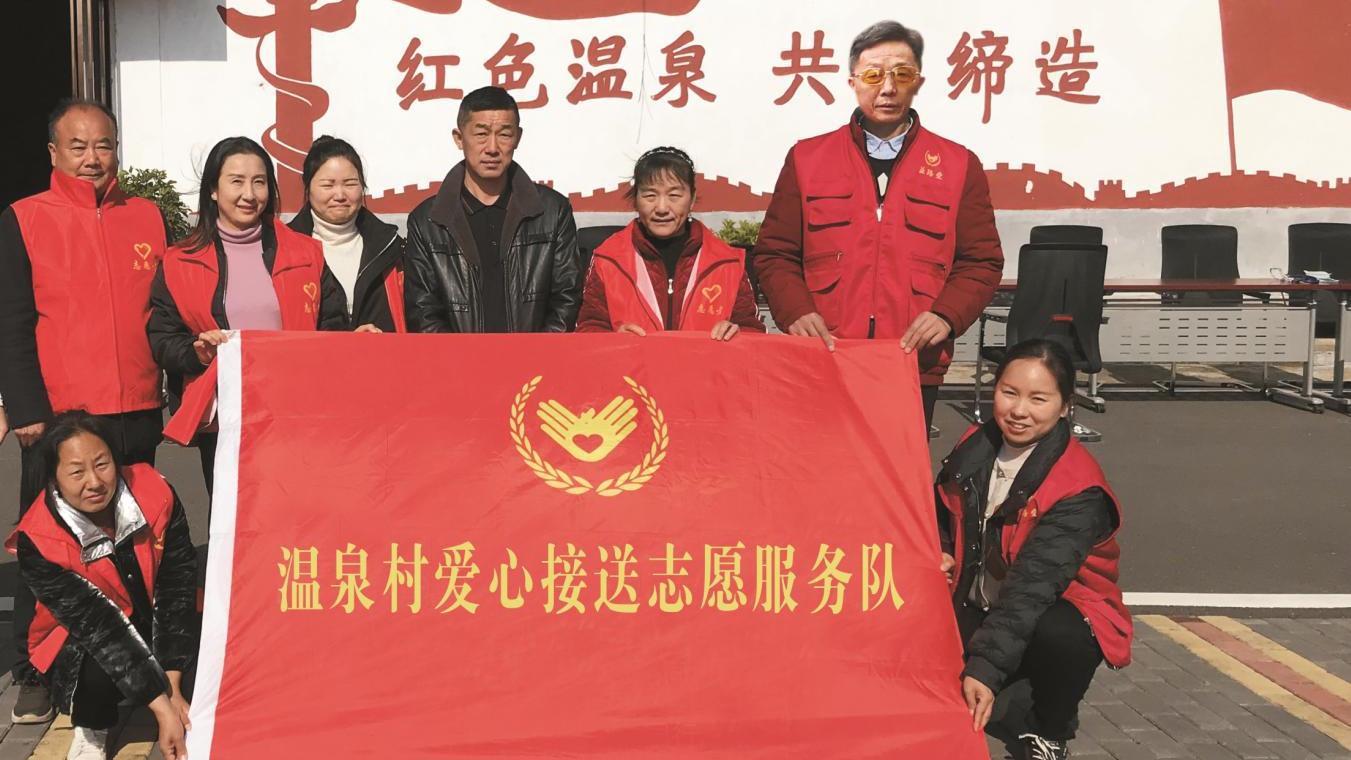 寒假到來,洪山鎮中心學校校門口,一排身穿紅馬甲、舉著“愛心接送”標識牌的志愿者吸引了學生和家長羨慕的目光。這是洪山鎮溫泉村愛心接送志愿服務隊來接放寒假的孩子們回家的暖心場面。