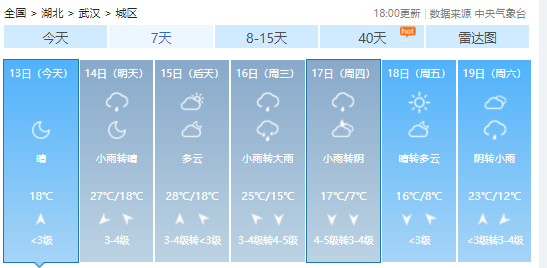 湖北省依然以晴暖為主