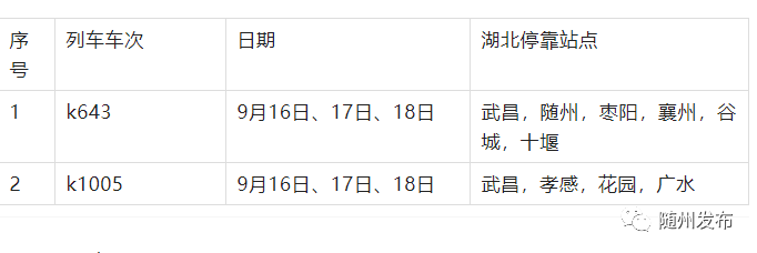 因疫情防控需要,請9月16日、17日、18日在以下相應區間站點乘坐過K643、K1005的乘客,主動向當地社區報備,服從社區健康管理,如出現不適,請及時就醫。