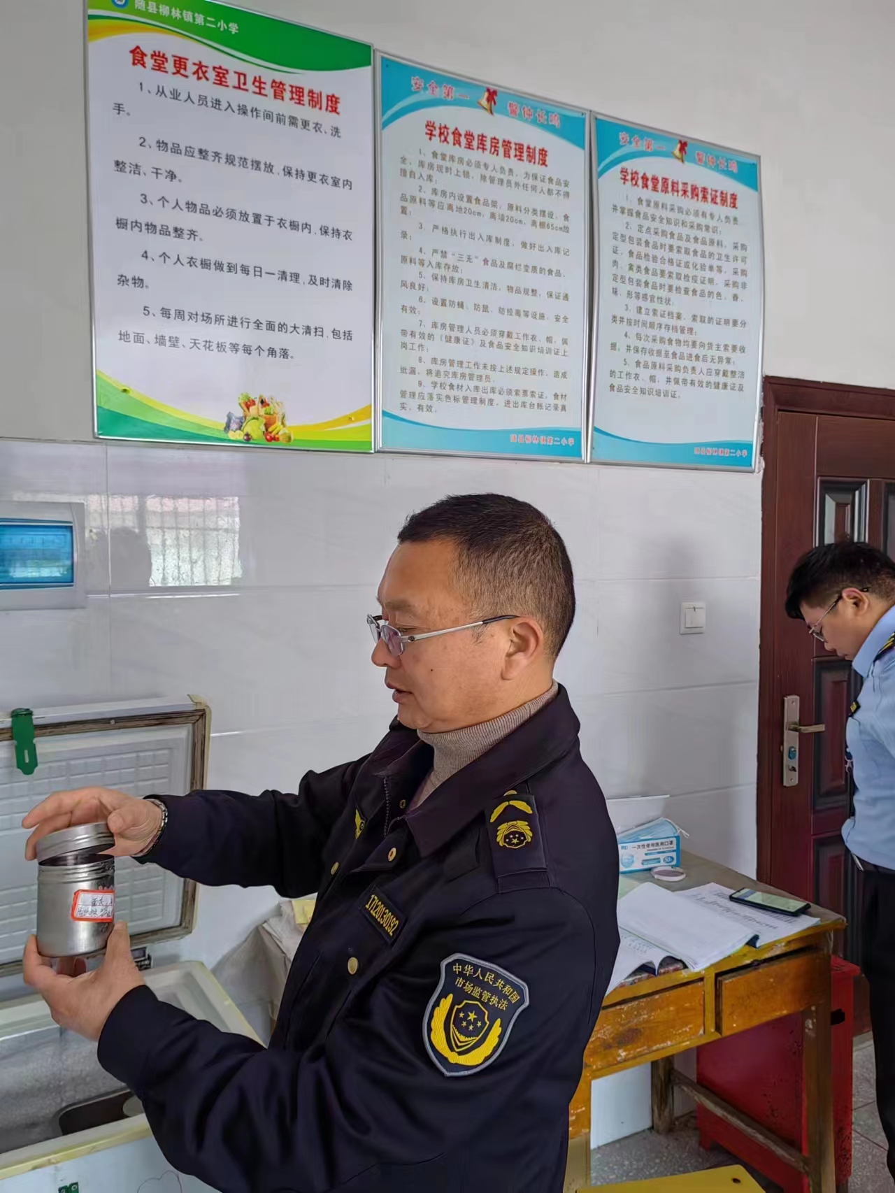 “五一”將至,隨縣柳林市場監管所執法人員對轄區學校、幼兒園食堂進行專項檢查,從制度管理、人員管理、食品留樣等方面逐一排查食品安全風險隱患,督促校(園)方嚴格落實食品安全主體責任,確保節前假后學生們"舌尖上的安全"。(龔軍建)