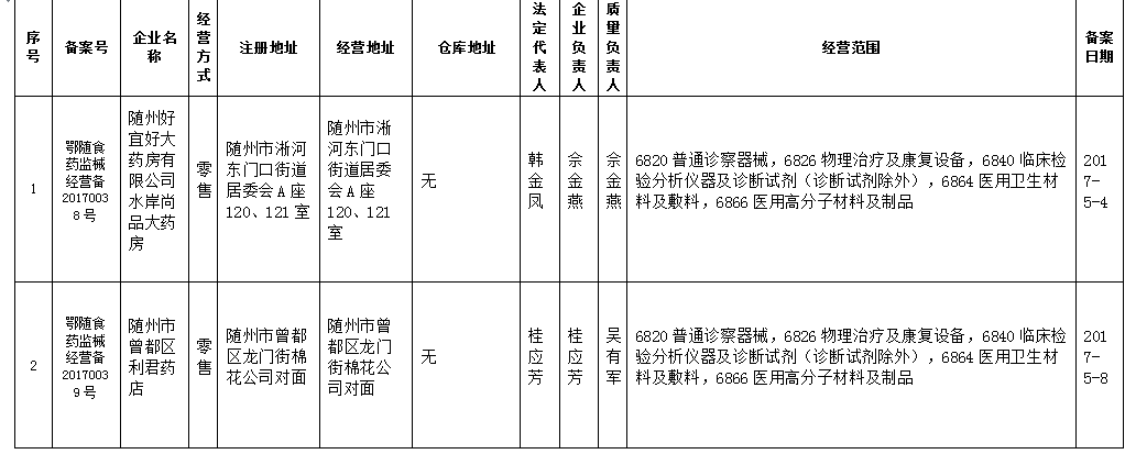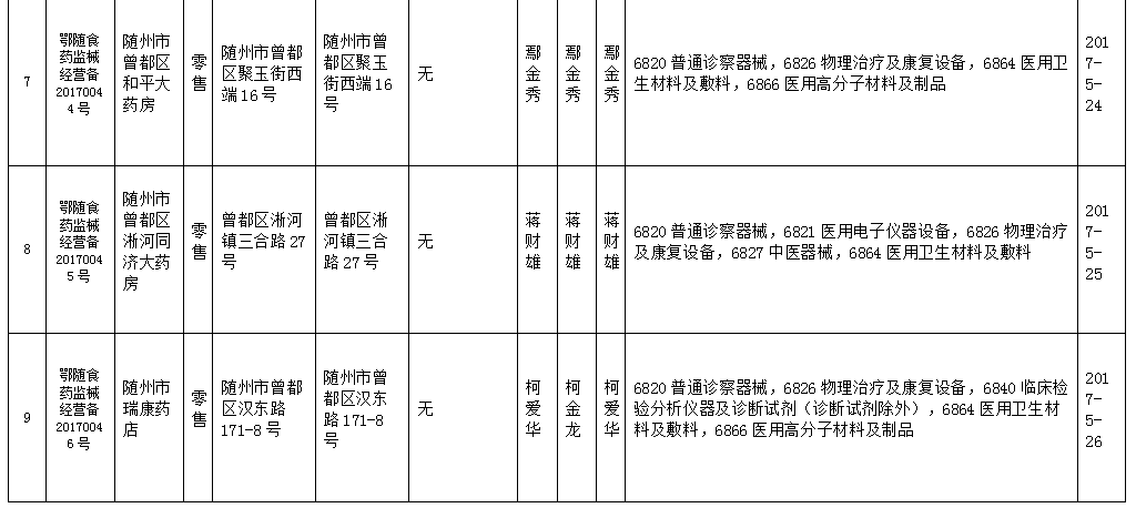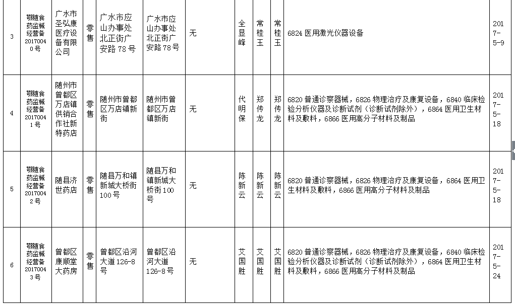 根據(jù)《醫(yī)療器械經(jīng)營企業(yè)許可證管理實施辦法》的要求,我局對以下行政審批項目予以公告。 監(jiān)督電話:0722-3311257 通訊地址:隨州市清河路22號 郵政編碼:441300