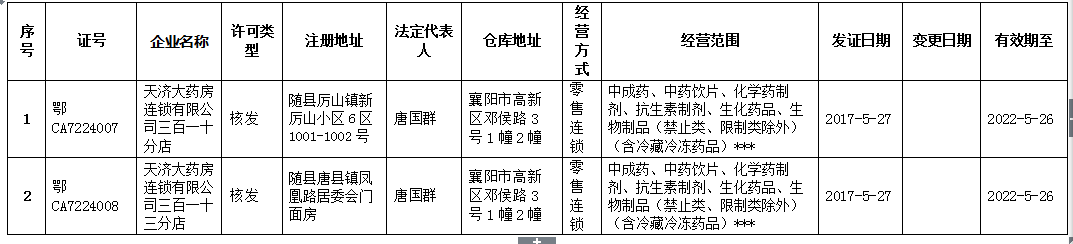 根據(jù)《藥品經(jīng)營許可證管理辦法》的要求,我局對以下行政審批項目予以公告。 監(jiān)督電話:0722-3311257 通訊地址:隨州市清河路22號 郵政編碼:441300