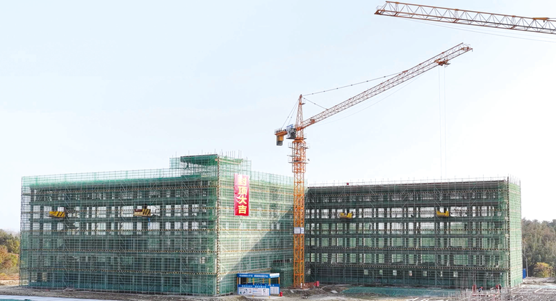 ??13日下午現場看到,南、北兩個施工區(qū)已全面開工,現場塔吊林立、機器轟鳴,各項工作有序向前推進。南區(qū)除10號樓學生宿舍已經封頂外,緊鄰的9號樓學生宿舍也已拔地而起,建設至地上第二層,工人們正搶抓晴好天氣架設模板、綁扎鋼筋,用實干“刷新”項目進度。