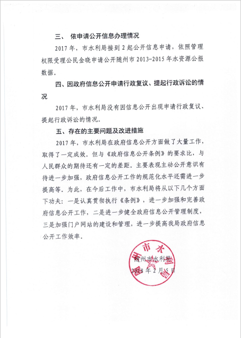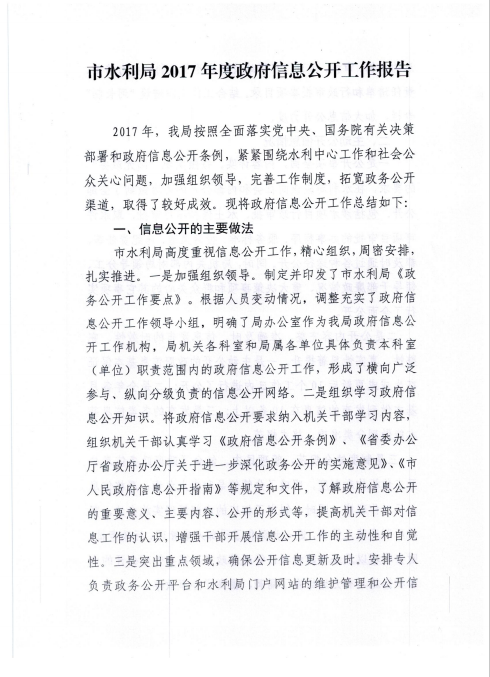 市水利局2017年度政府信息公開年度報(bào)告