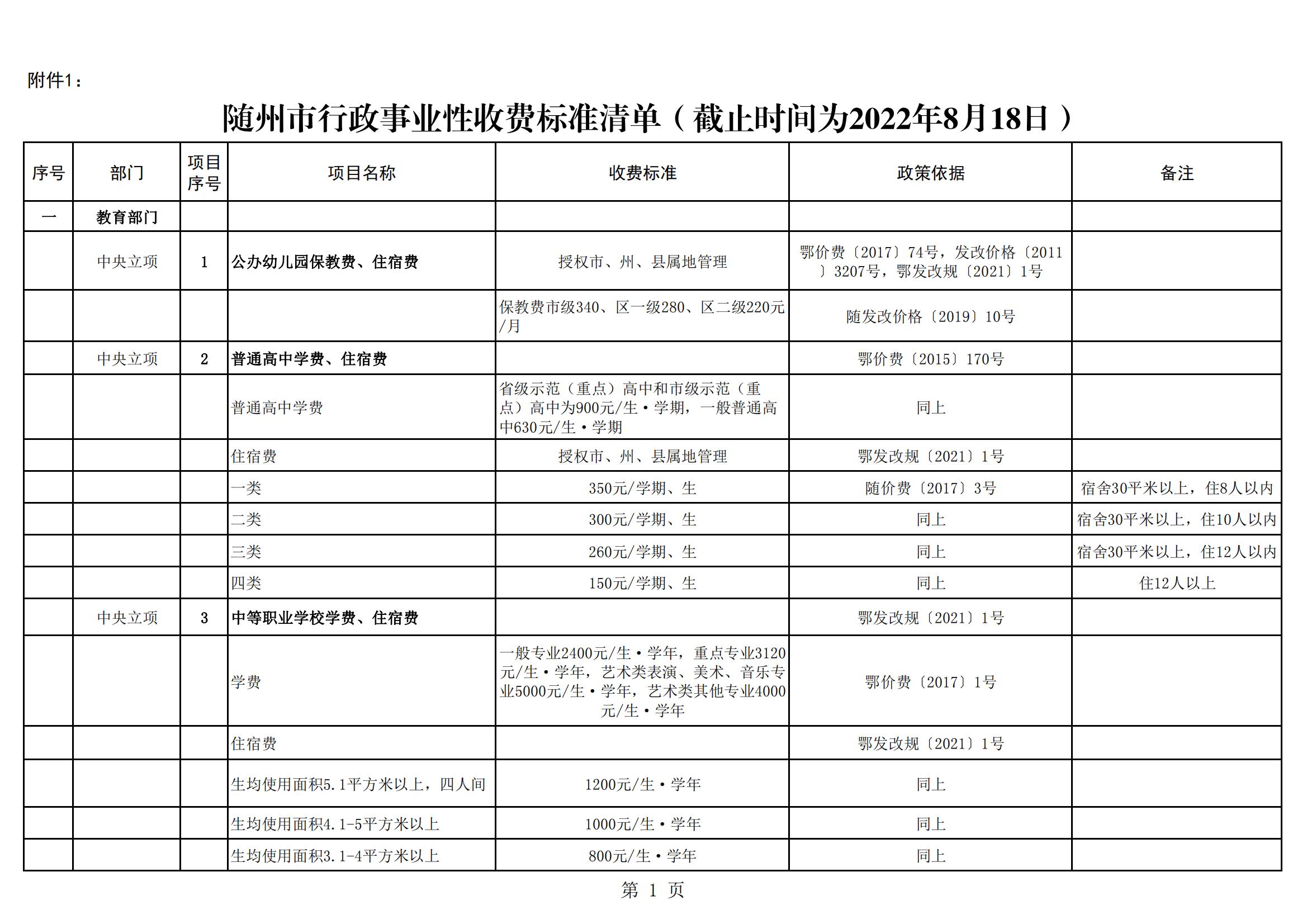 市發改委關于第六次動態調整《隨州市行政事業性收費(涉企)標準清單》的通知