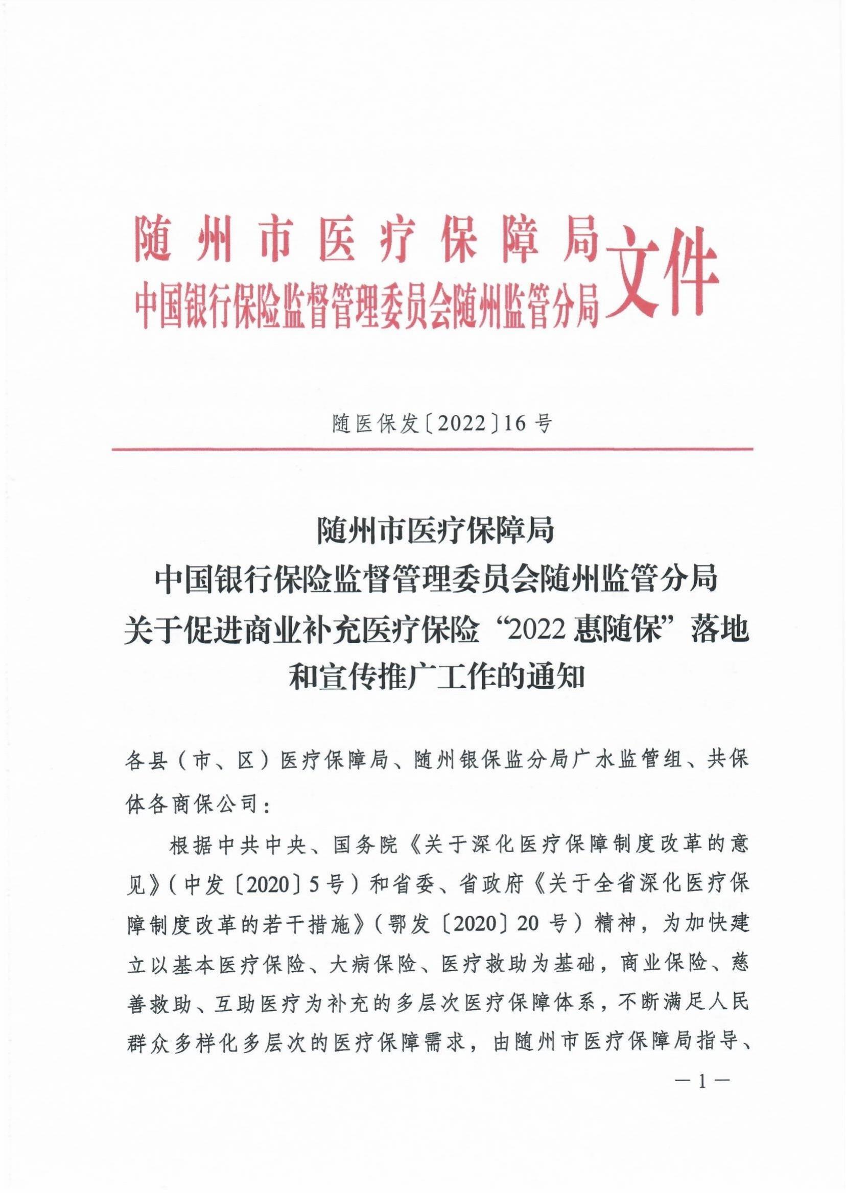 關于促進商業補充醫療保險“2022惠隨保”落地和宣傳推廣工作的通知