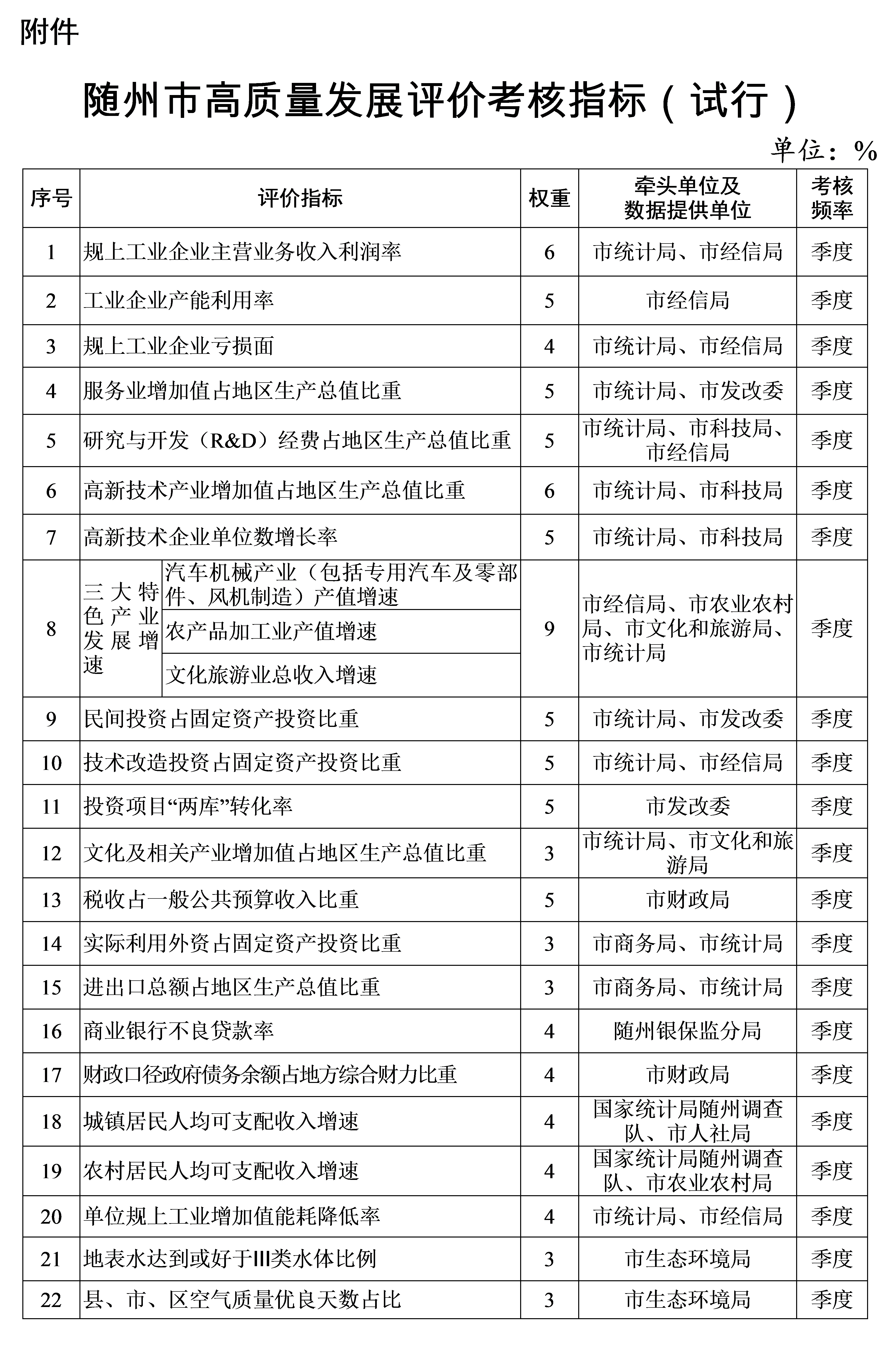 市人民政府辦公室關(guān)于印發(fā)隨州市高質(zhì)量發(fā)展評(píng)價(jià)與考核辦法(試行)的通知