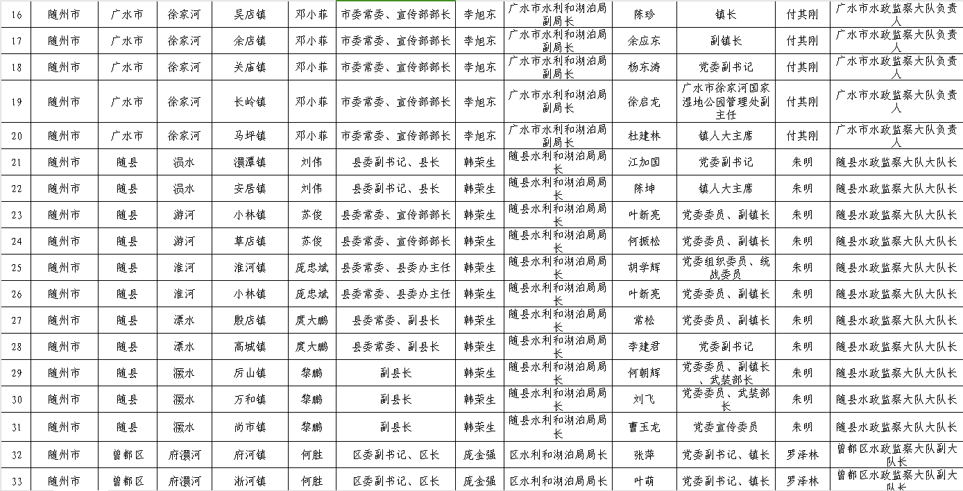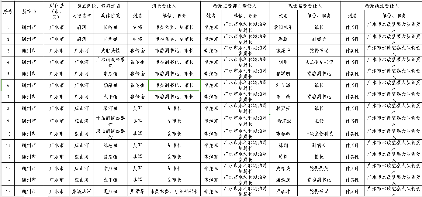 隨州市重點(diǎn)河段、敏感水域采砂管理責(zé)任人名單