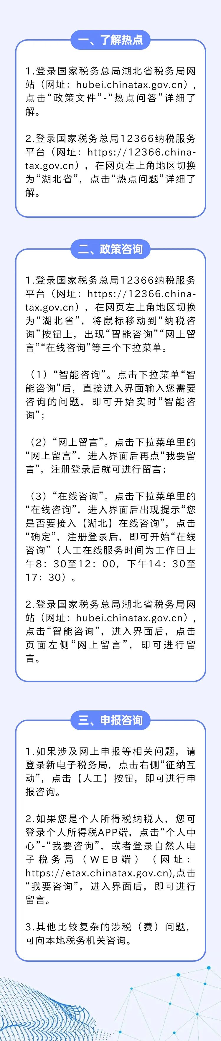 如您還有其他稅費需求或疑問,可以通過以下渠道進行了解或咨詢: