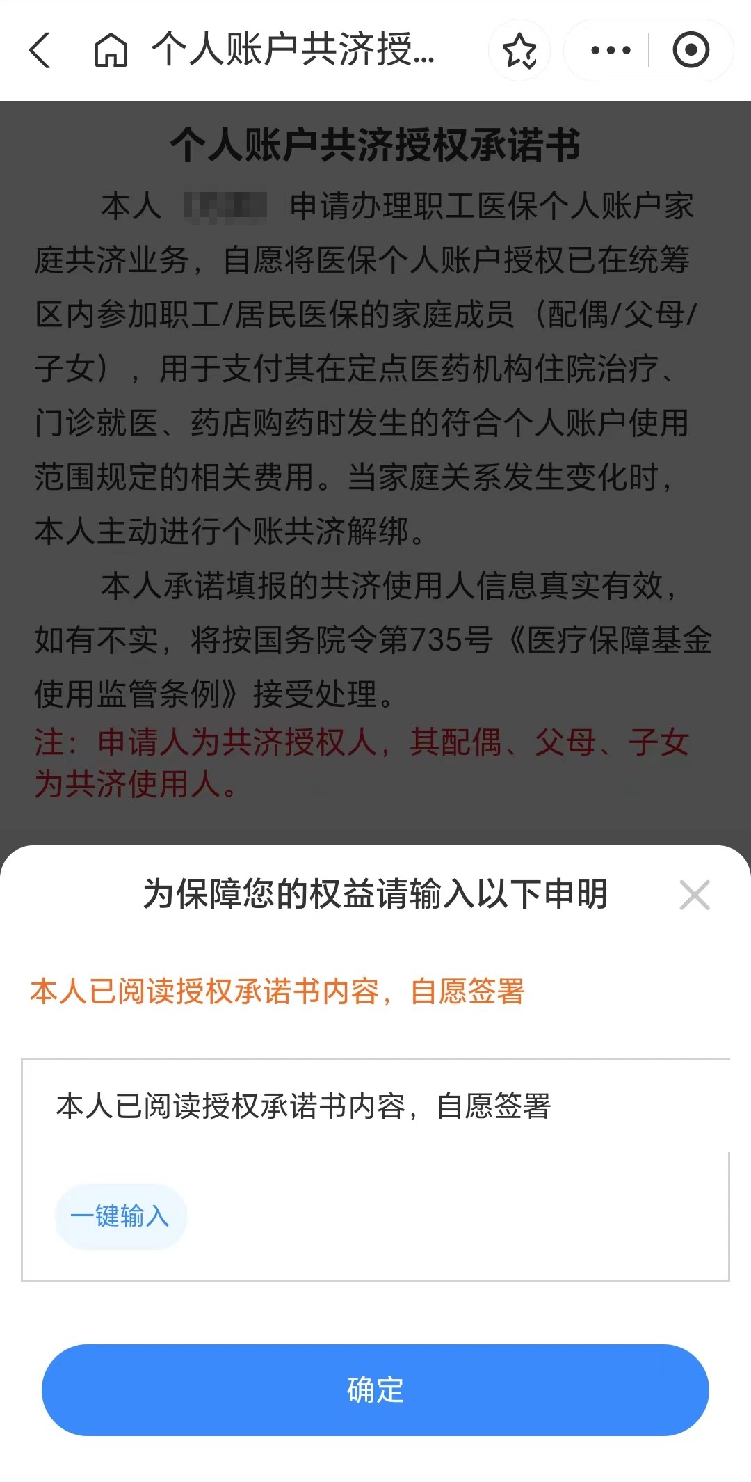 ③點擊“共濟賬戶授權”,填寫承諾書。