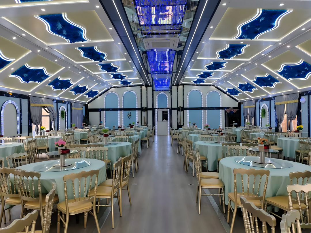 從外觀來看,這款豪華宴會(huì)車在未展開狀態(tài)下,它是一輛標(biāo)準(zhǔn)的9.6米商用車型,便于在道路上靈活行駛,適應(yīng)不同場(chǎng)景的運(yùn)輸需求。而當(dāng)車輛展開后,其空間瞬間“擴(kuò)容”,寬度達(dá)到11米,內(nèi)部長度為8.5米,內(nèi)部高度3.8米,內(nèi)部使用面積更是達(dá)到了93平方米,寬敞的空間完全能夠滿足各類大型宴會(huì)、商務(wù)活動(dòng)、文化展示等場(chǎng)景的需求,真正實(shí)現(xiàn)了“一車多用、空間靈活”。